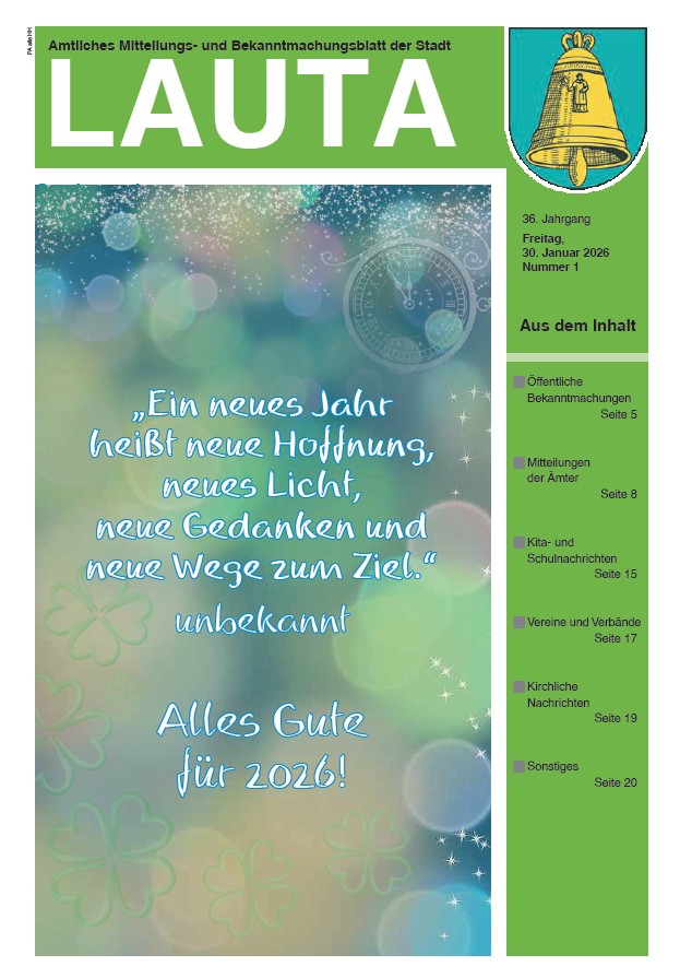 Einmal monatlich, in der Regel am letzten Freitag des Monats, erhalten alle Haushalte der Stadt Lauta, einschließlich ihrer Ortsteile, das Amtsblatt kostenlos zugestellt.